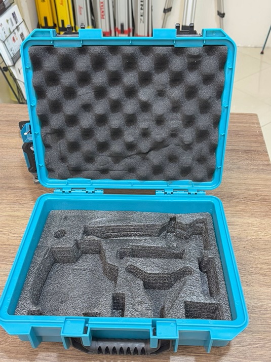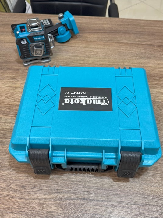 جعبه تراز لیزری ماکوتا ۳۶۰ درجه ۴بعدی : دارای جای پایه ۱۷ سانتی ، ریموت کنترل، باتری ،پایه دیواری و اهن ربایی و پایه چرخشی کوچک ، پیچ تنظیم ارتفاع